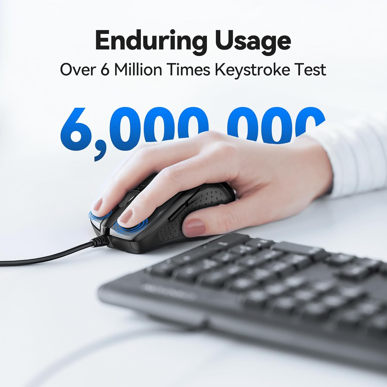 Introducing the TECKNET USB Wired Mouse, your ultimate companion for seamless navigation and precision control! This sleek and stylish corded mouse is designed to enhance your computing experience with its advanced features and ergonomic design.